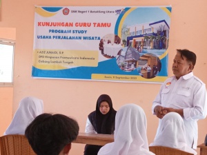 Untuk menjawab tantangan perkembangan pariwisata tersebut, SMK Negeri 1 Batukliang Utara Berkomitmen untuk Mencetak generasi Lulusan yang Siap bekerja sesuai bidangnya. Untuk mencetak lulusan yang siap bekerja, banyak upaya yang dilakukan selain kegiatan belajar mengajar, salahsatunya adalah mendatamgkan Guru Tamu dari luar, baik dari Instansi Pendidikan Tinggi maupun dari Dunia Usaha dan Industri. Bulan ini kami Mendatangkan Guru tamu untuk Jurusan UPW dan Perhotelan, beliau adalah Bapak Aziz Junaedi, S.P dari DPD Himpunan Pramuwisata Indonesia (HPI) Cabang Loteng dan Bapak Jamroni, S.Par, M.Par selaku Dosen Praktisi Poltekpar Lombok dan sbg Manager Operasional Pink Nusa Properties. Tujuan Mengundang Guru Tamu ini adalah untuk memberikan dan berbagi Motivasi, Pengalaman dan ilmu serta memperkenalkan mengenai Budaya Kerja dan Pengenalan Dunia Usaha dan Dunia Industri kepada Peserta Didik.
