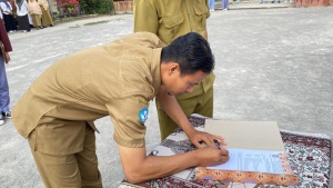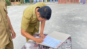 Upacara Apel Bendera di Rangkaikan dengan Pelaksanaan Program P5 dengan Kegiatan Pelantikan dan serah terima jabatan pengurus OSIS masa bakti 2022/2023 ke masa bakti 2023/2024 SMKN 1 BATUKLIANG UTARA