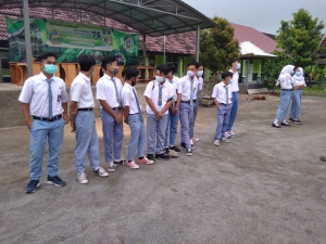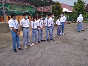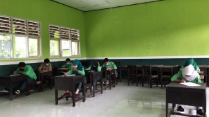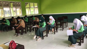 Pelaksanaan Ujian setiap paginya, diawali dengan persiapan peserta didik di luar kelas, yaitu pengukuran suhu badan semua peserta didik di pintu gerbang dengan alat THERMOGUN, selanjutnya mencuci tangan dengan sabun pada tempat yang telah disediakan serta berbaris di halaman dengan jarak 1 meter, dan dilanjutkan dengan kegiatan Do’a Bersama dan Muroja’ah Tahfidz.